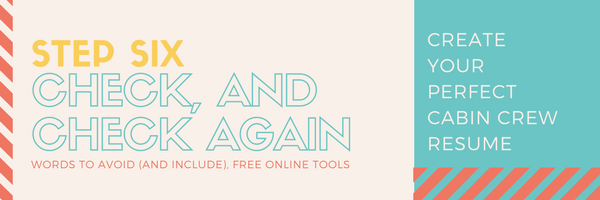 There are some great free online resources that will also help to further improve your CV. These tools look for bad keywords and phrases that could hurt the success of your CV. Check out the full list of these resources here: The Best Online Resume Writing Tools for Your Cabin Crew CV