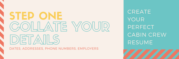 Start by collecting all the boring information that will be needed for your Cabin Crew CV. Sometimes we can be tempted to guess or provide the rough date we finished a job or graduated from school. This simply won’t do. You need to have the exact details. That includes addresses, names, phone numbers and dates.